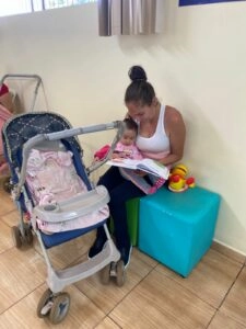 “Logo que recebemos o Álbum, percebemos que seria um instrumental na hora de desenvolver ações com bebês, famílias e cuidadores”, relata Adriana Rossini, coordenadora pedagógica do CCI Eureca I, em Cascavel. “Muitas famílias em situação de vulnerabilidade não têm oportunidade de falar sobre a gravidez, e o álbum traz atividades simples e ricas para trabalhar com as famílias, mostrando por exemplo como conversar com o bebê na hora do banho ou dando dicas sobre amamentação, aumentando a conexão com a criança.”
