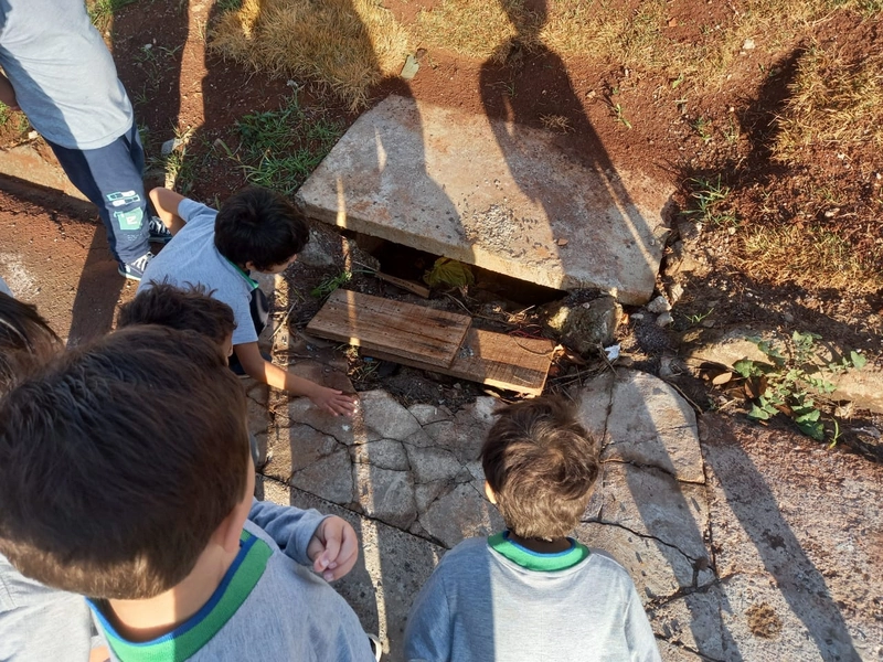 Bueiros expostos, calçadas quebradas e outros problemas do espaço público chamaram a atenção das crianças. Na foto, estudantes da Escola da Transparência. / Crédito: SEMED Cascavel