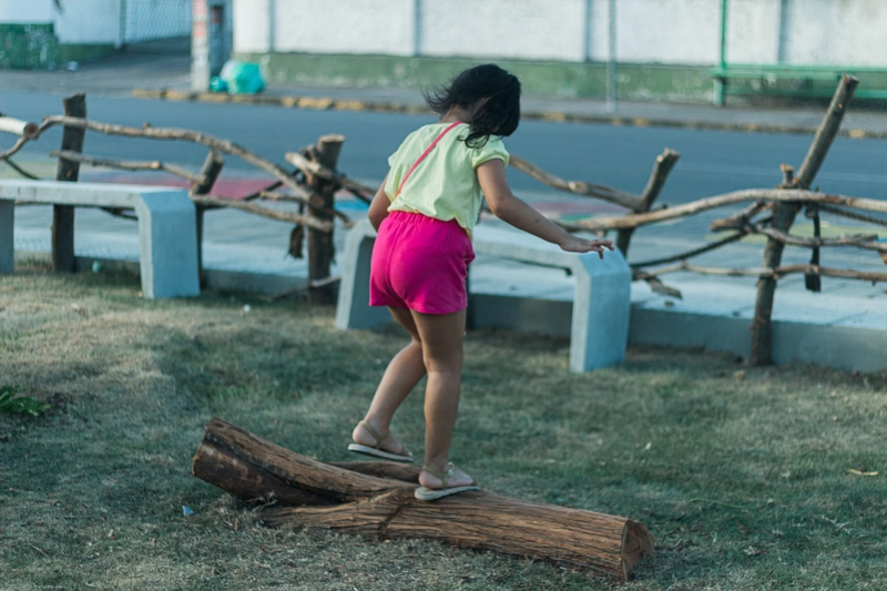 Criança brinca no parque naturalizado Estação Ferroviária, localizado na região central da cidade. Sua concepção partiu da escuta das crianças e da comunidade / Crédito: Escola de Notícias