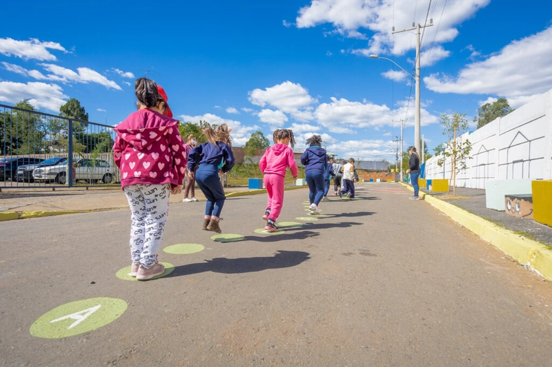 Crianças ocupam rua de Canoas em ambiente lúdico e acolhedor