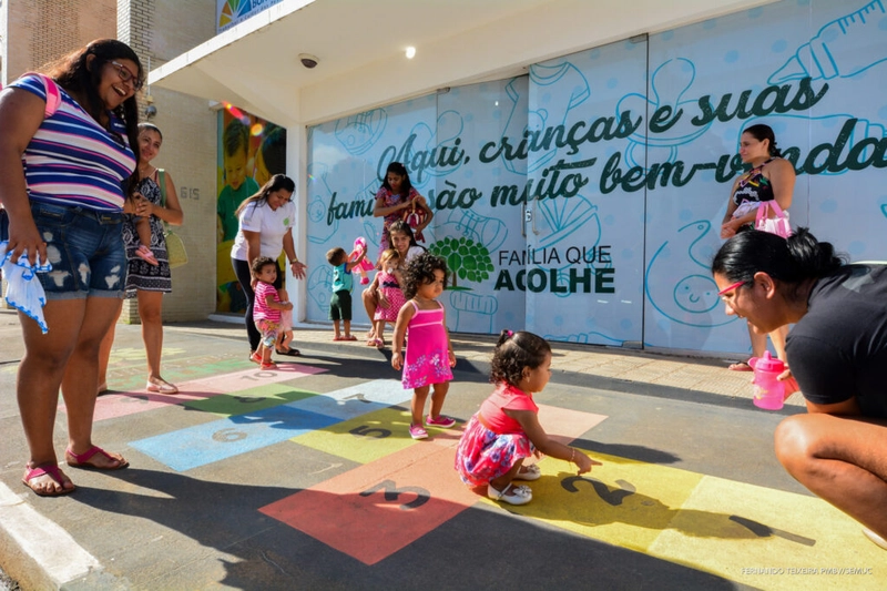 Amarelinha para as crianças no espaço do Família Que Acolhe. Crédito: Fernando Teixeira