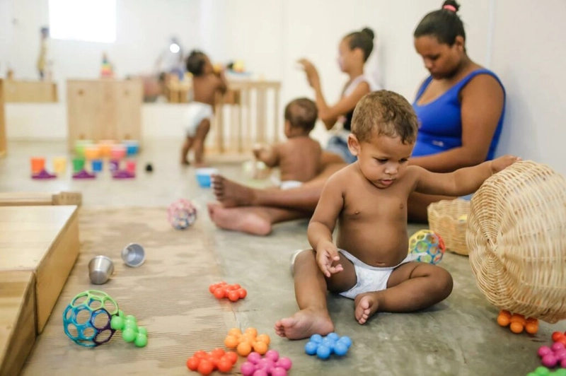 Crianças brincam no Espaço Mãe Coruja