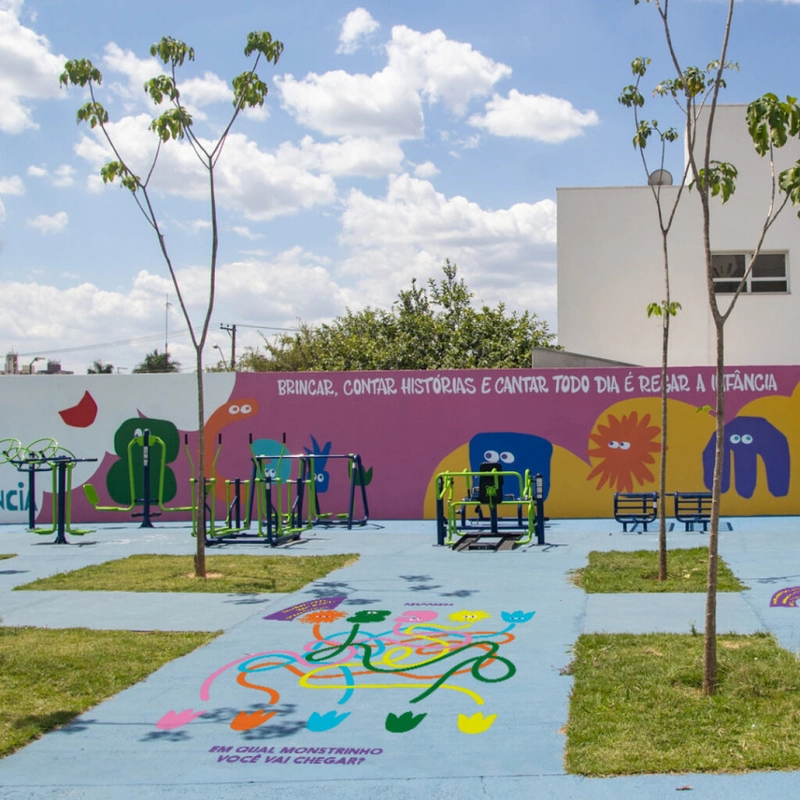 Praças ganham pinturas coloridas e atraem famílias para uma ocupação mais lúdica da cidade. Crédito: Prefeitura de Jundiaí