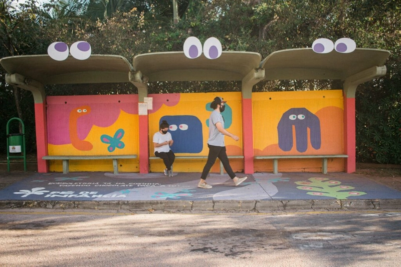 Pé de Infância também apoiou intervenções nos pontos de ônibus da cidade. Crédito: Prefeitura de Jundiaí