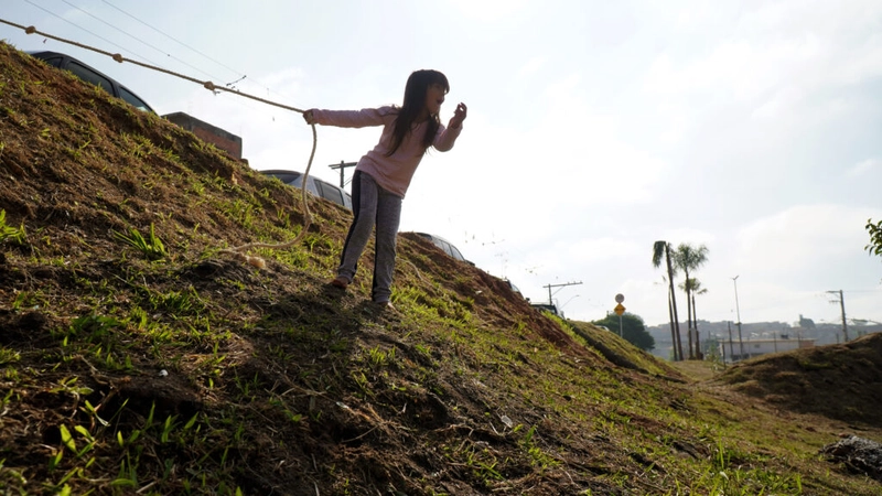 Crianças podem aproveitar o desnível para brincar de escalar e se equilibrar. Fotos: Prefeitura de Mogi das Cruzes.