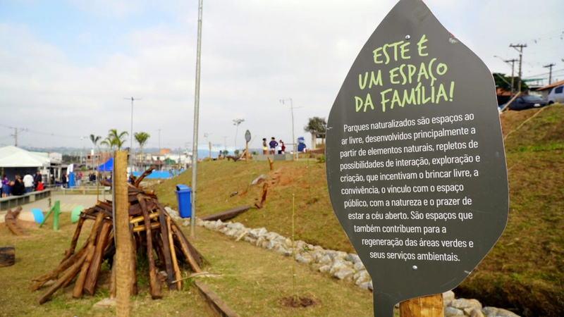 Crianças e cuidadores do bairro Jardim Planalto, no centro de Mogi das Cruzes (SP), agora tem um parque naturalizado para chamar de seu. Antigamente uma área ocupada por entulho, com risco para moradores, o local agora possui trilhas sensoriais, brinquedos e mobiliário.