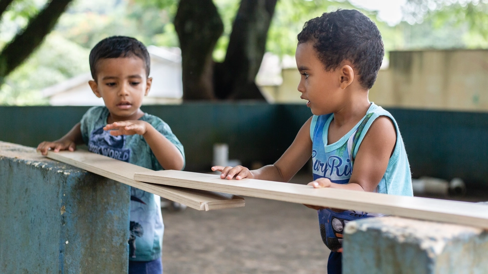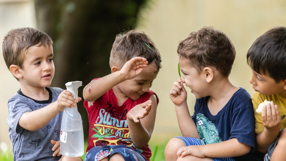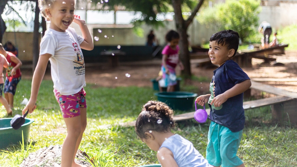 Ao explorar o ambiente natural, por exemplo, as crianças desenvolvem consciência sobre si, os outros e sobre a interação com o meio ambiente. Ao correr, pular, escalar, rolar, subir, descer, pendurar, escorregar, desenvolvem consciência corporal. “Essas brincadeiras também favorecem o desenvolvimento da colaboração e empatia, ao compartilhar experiências e interagir com a natureza”, conta Cristiane, que complementa: “Elas exploram texturas, cores, formas, sons e odores; percebem diferentes medidas e quantidades enchendo e esvaziando recipientes com elementos da natureza, e compreendem processos de transformação, como o crescimento das plantas”.